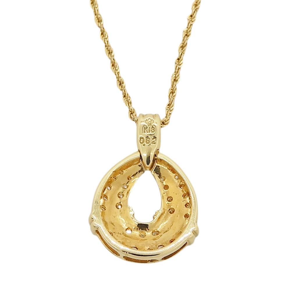 トップ部分には、合計0.62カラットものダイヤモンドが贅沢にセッティングされています(バチカン裏に「0.62」の刻印あり)。 光を受けるたびにキラキラと繊細な輝きを放ち、お顔周りをパッと明るく華やかに演出してくれます。
