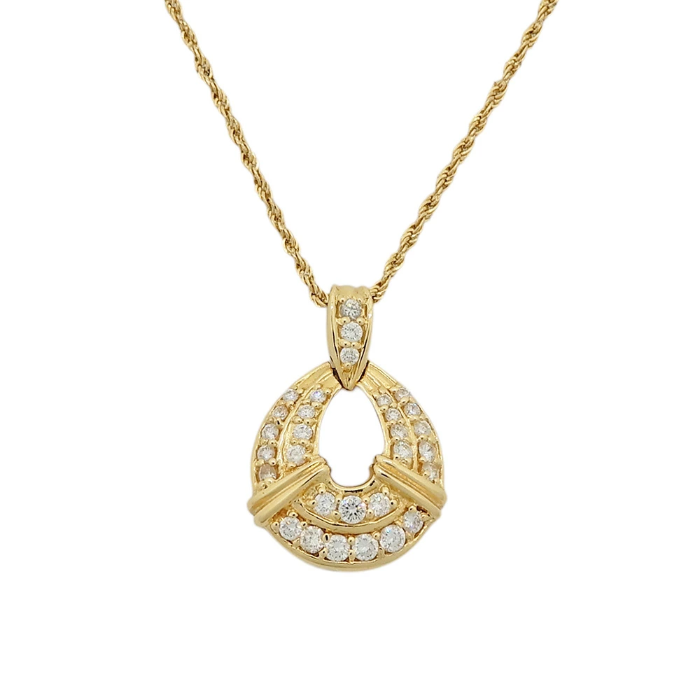 まず目を引くのは、緩やかな曲線を描くオープンワークのペンダントトップです。 中央が空いた抜け感のあるデザインなので、重たくなりすぎず、デイリーユースからフォーマルなシーンまで幅広く活躍してくれます。