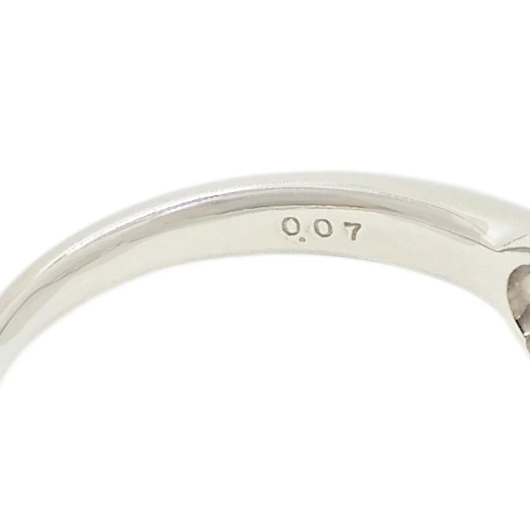 リングの腕部分には、片側3石ずつ、計6石のメレダイヤ(計0.07ct)があしらわれています。