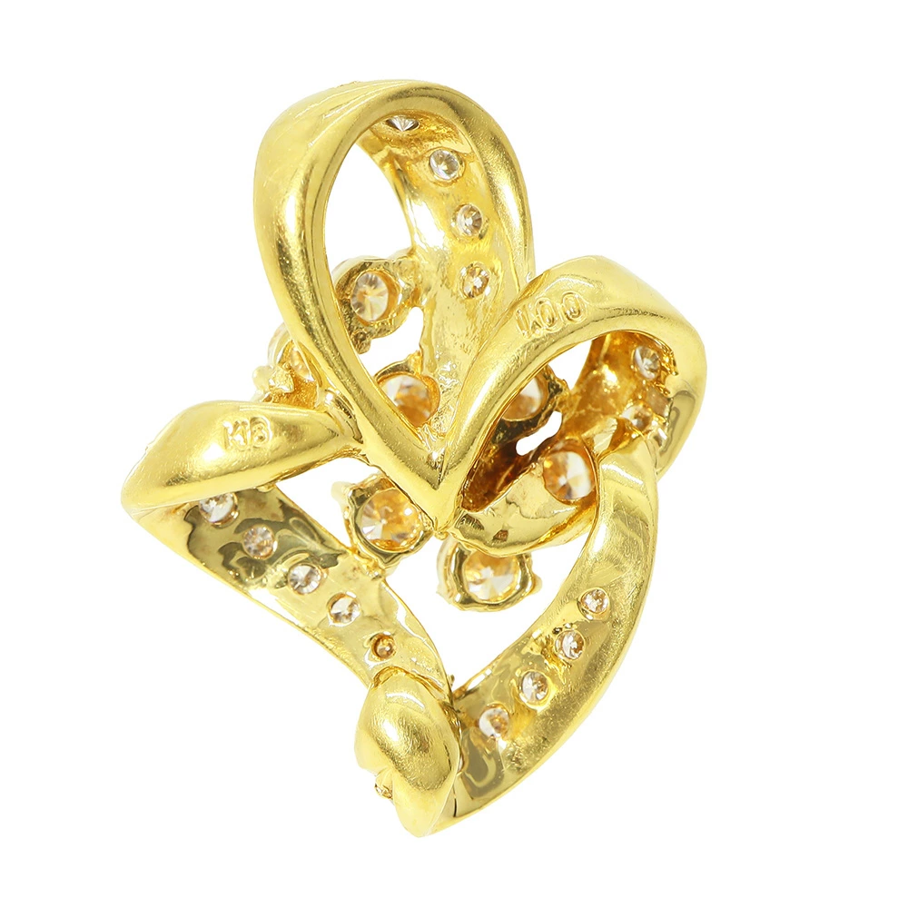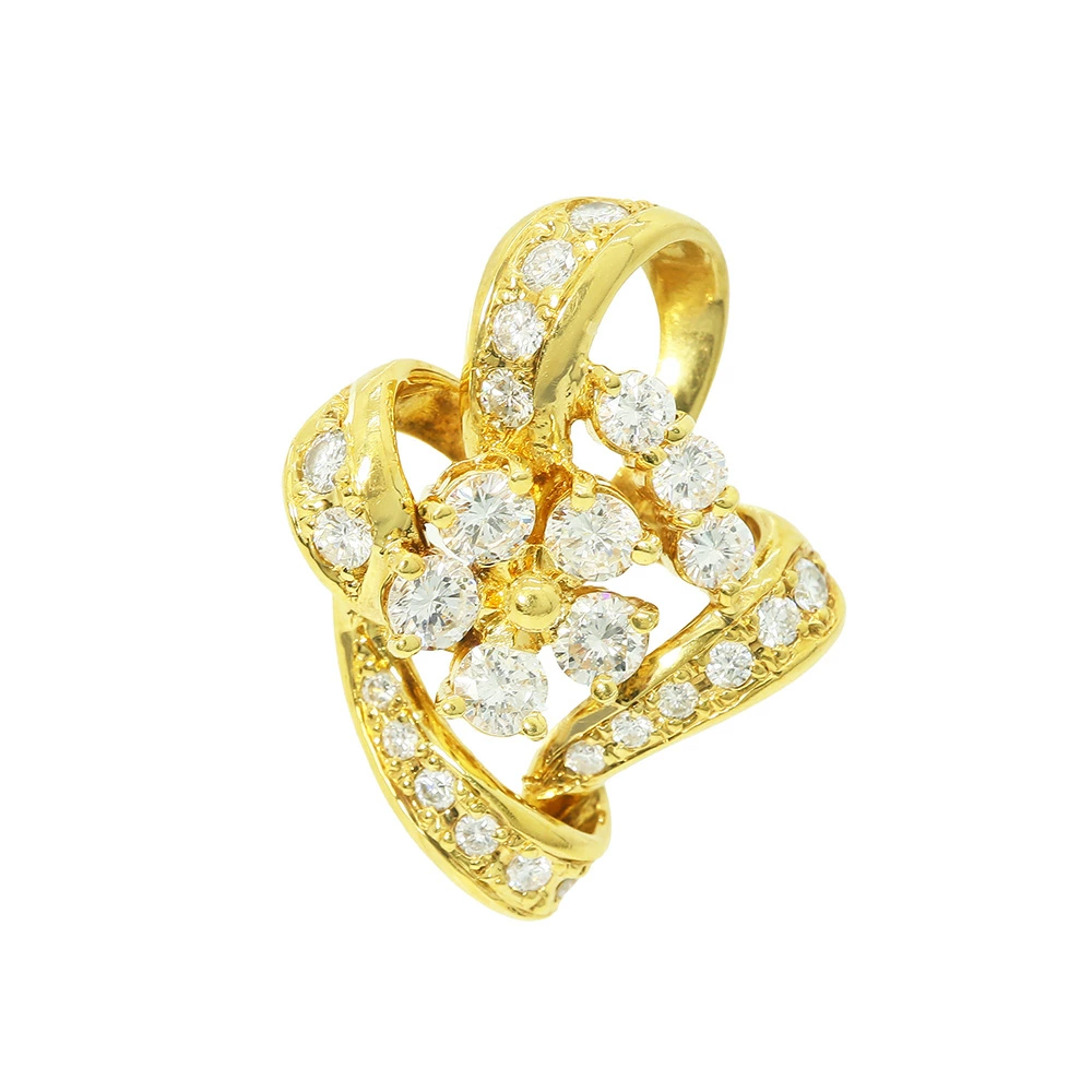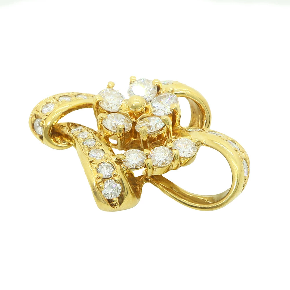 今回ご紹介するのは、立体的なリボンのようなラインと、中央に咲き誇る一輪の花が目を引くK18ダイヤモンドペンダントトップです。