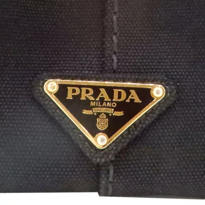カナパの最大の魅力は、丈夫なキャンバス地の中央に大きくあしらわれた**「PRADA MILANO」**のロゴ。