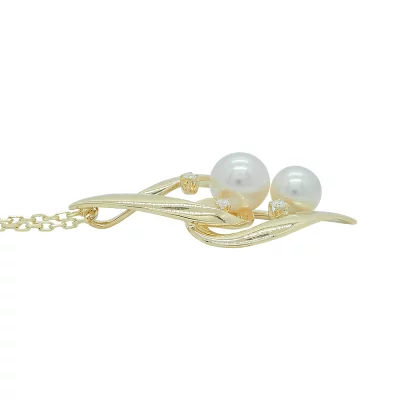 K18(18金)素材の安心感: チェーンや留め具に使われているK18は、変色しにくく、長く愛用できる耐久性を誇ります。肌馴染みの良いイエローゴールドの輝きが、真珠の**美しいテリ(光沢)**を一層引き立てます。