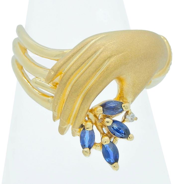リングのメイン部分が、まるで優しく何かを掴んでいるかのような立体的な手のデザインになっているのが最大の魅力です。