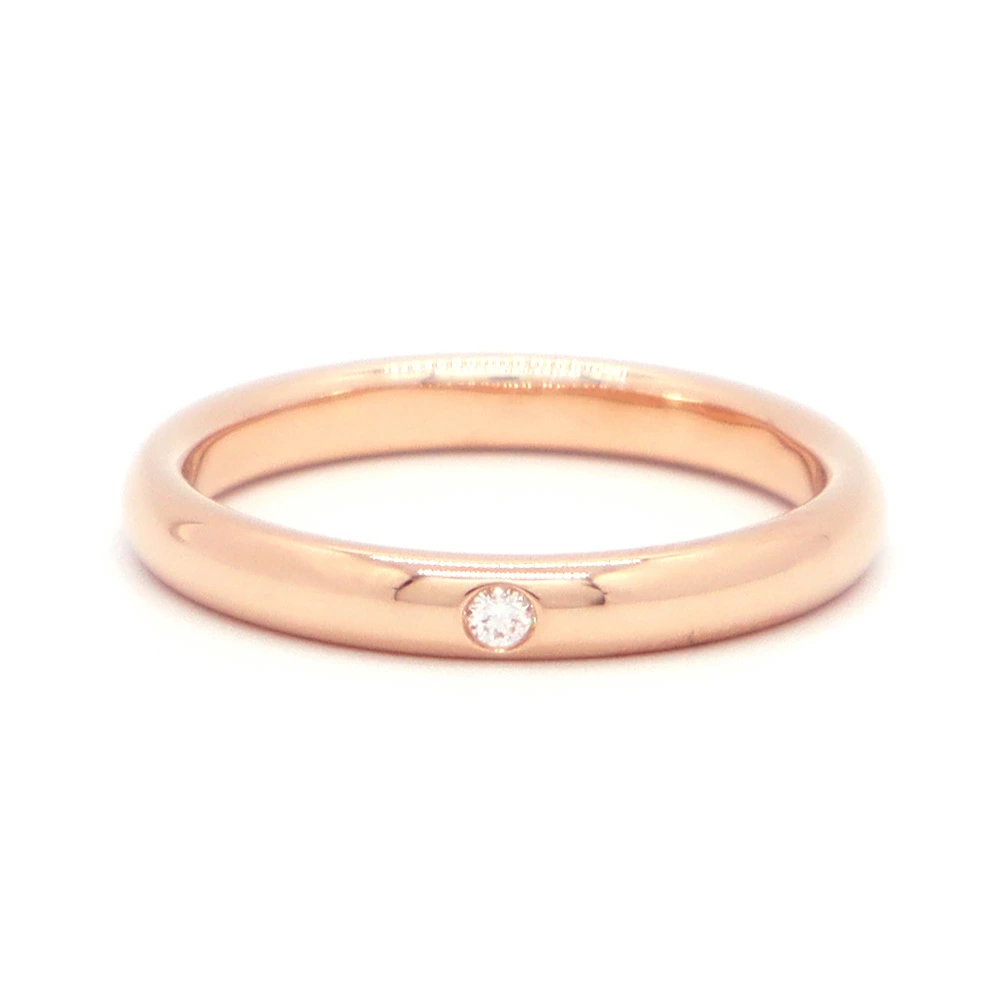 「スタッキング(積み重ねる)」という名の通り、他のリングとの重ね付けを楽しめるよう計算された、滑らかで丸みのあるフォルムが特徴です。18Kローズゴールドの温かみのある輝きが、一粒のダイヤモンドをより一層引き立てています。