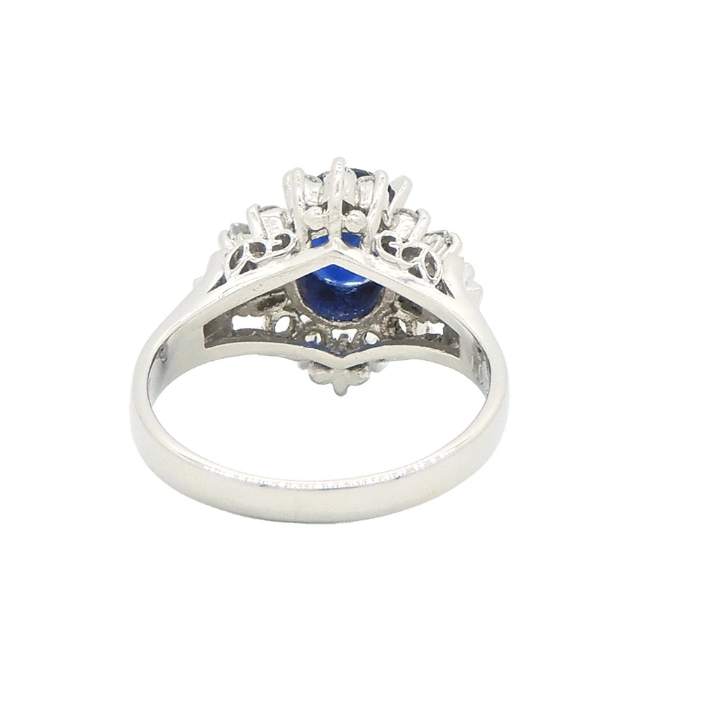 中心に鎮座するサファイアの、深く、吸い込まれるような濃紺が圧巻。一目で