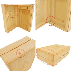 液面の低下が最小限(天使の分け前) 古いお酒はコルクの隙間から水分が蒸発し、中身が減ってしまう「液減り」が起きやすいものです。今回は液面が非常に高く、密閉状態が完璧だったことがプラス査定となりました。