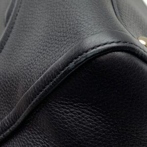 グッチの象徴である「インターロッキングG」のエンボスロゴが、ブラックレザーの陰影でよりシックに引き立ちます。 -