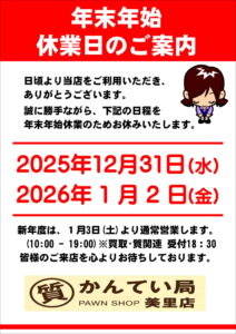 :2025年12月30日(火)18:00閉店(査定受付17:30分まで)