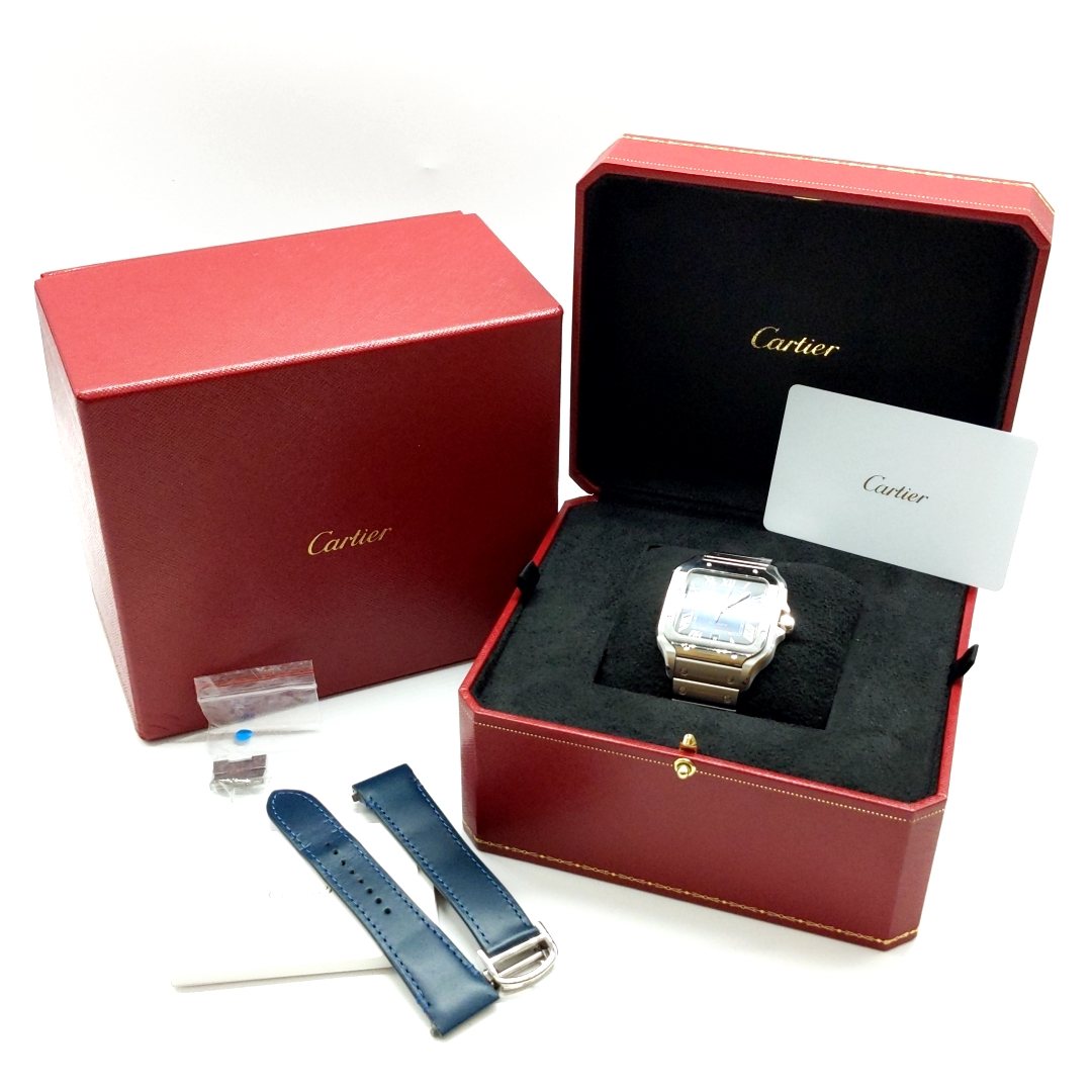 今回お持ちいただいたサントスは、替えの革ベルトも付属品がすべて揃っていました。