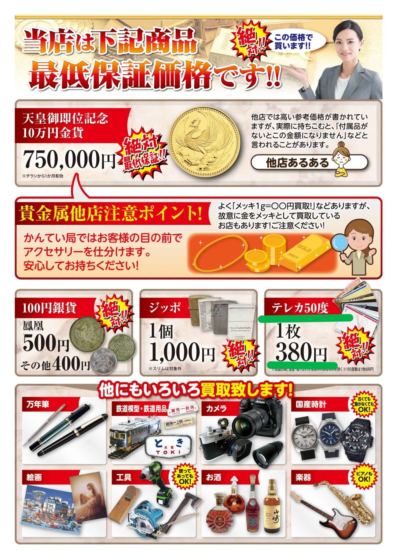 当店ではチラシに書かせていただいている通り、テレカは1枚50度数380円でのお買取りになります!
