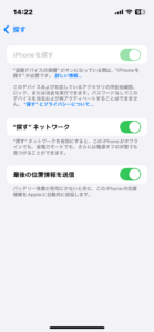 ステップ③:1時間経過後、「iPhoneを探す」をオフにする