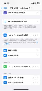 - 「プライバシーとセキュリティ」をタップ。