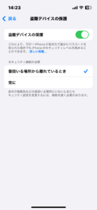 - 「盗難デバイスの保護」をタップし、この機能を「オフ」にする。