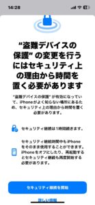 - お客様には、この作業を店頭で行う場合は、この1時間を待っていただく必要があります。そのためご自宅などで事前に「盗難デバイスの保護」をオフにされることをおススメします。