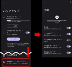 ① Googleサービスのバックアップを保存する