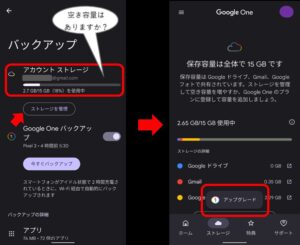 まずは、大切な写真や連絡先を失わないよう、GoogleドライブやGoogle Oneへバックアップを取りましょう。