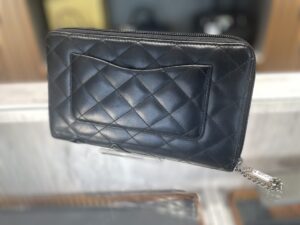 今回買取させていただいた「CHANEL【シャネル】カンボンライン 長財布 オーガナイザー ウォレット ラウンドファスナー ココマーク」は、収納力抜群のラウンドファスナータイプの長財布です。カードポケットや札入れ、小銭入れなど、機能性も抜群です。
