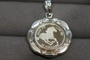 このツバル ホースプラチナコインは、イギリス連邦加盟国、ツバルが発行している法定貨幣です。品位はPT1000、純度99.95%のプラチナが用いられています。 表面にはイギリスのエリザベス女王2世の肖像、裏面には気品あふれる馬がデザインされており、その美しさからコレクションやアクセサリーとしても非常に人気が高いです。