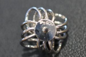 • 品位(純度)刻印: 今回は「Pt900」の刻印を確認しました。これは、素材の90%がプラチナであることを示しています。プラチナの主な刻印には「Pt1000(純プラチナ)」「Pt950」「Pt900」「Pt850」などがあります。この刻印が確認できないと、正確な査定が非常に難しくなります。