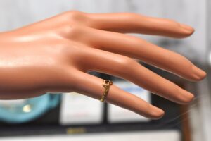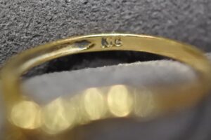 - リング内側の**「K18」や「750」**といった刻印の有無を確認。これが金の品位(純度)を示す最も重要な要素。