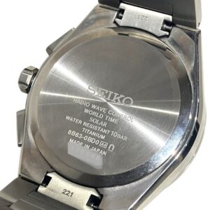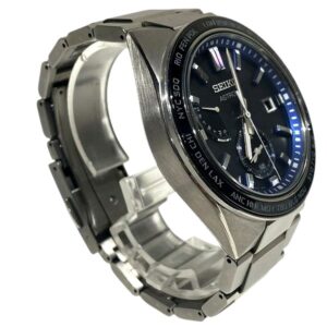 このモデルは、GPSソーラーではなく、日本・中国・アメリカ・ドイツ・イギリスの世界5エリア対応の「電波修正機能」を搭載しており、よりスピーディーで安定した時刻修正を実現しています。さらに、ケースとブレスレットに採用されているチタンは、ステンレススチールに比べて非常に軽量であり、耐食性にも優れているため、アストロンの高い実用性をさらに高めています。ネイビー文字盤の落ち着いた色味も相まって、ビジネスシーンに最適な一本です。