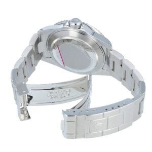 16610の後継116610LNおよび現行の126610LNのブレスレットでは、無垢仕上げのセンターコマを採用しているため重さがあります。一方、16610のブレスレットはセンターコマが中空となっており、着用時の重量感や手首への食いつきが少なく、装着が快適です。毎日使う時計だからこそ、この「軽さ」は大きなアドバンテージになります。
