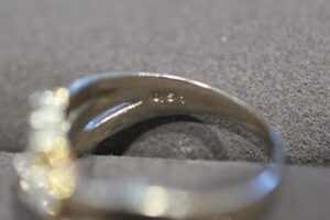セッティング: 石を留めている爪が緩んでいないかチェックします。今回は0.57ctとしっかり量があったため、ダイヤモンドとしての価値をしっかりとプラス査定いたしました。