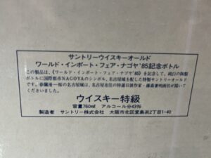 | 商品名 | サントリーウィスキーオールド ワールドインポートフェア ナゴヤ ’85記念ボトル |