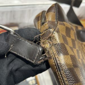 メッセンジャーバッグにおいて、ショルダーベルトは「命」とも言える部分です。 今回のお品物は、ショルダーに「千切れ」が見られました。 通常、使用に支障があるほどのダメージは大幅な減額対象となりますが、ルイヴィトンは「千切れていても、ボロボロでも価値が落ちきらない」のが凄いところ。修理を前提とした需要があるため、買取が可能です。