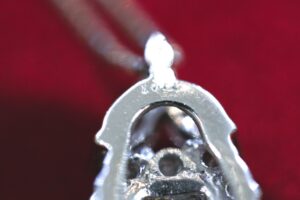 ペンダントトップの裏側や側面にある刻印は、品質を証明する「身分証」です。