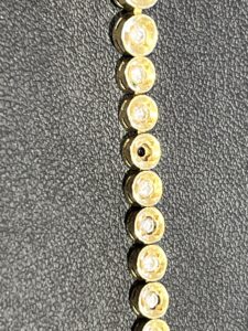 石のセッティング: 今回のお品物は34個のメレダイヤがセッティングされています。石のゆるみや、欠けがないかを一石ずつルーペで確認します。
