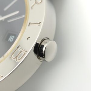 ベゼルの傷: 「ブルガリ・ブルガリ」最大の特徴であるベゼルのロゴ部分に傷がないかは非常に重要です。深い傷があると、刻印が消えてしまう恐れがあるため研磨が難しくなり、査定に影響します。