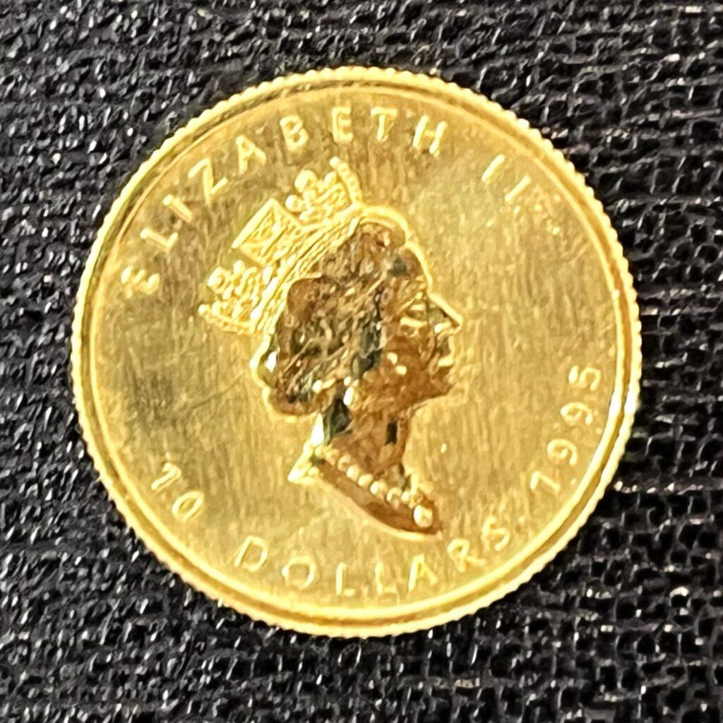 メイプルリーフ金貨は1979年に創鋳され、以後毎年発行されています。表面には英国の君主(エリザベス2世など)の肖像、裏面にはカナダを象徴するサトウカエデの葉が精巧にレリーフされています。その純度の高さから「フォアナイン(.9999)」と呼ばれ、信頼の証となっています。