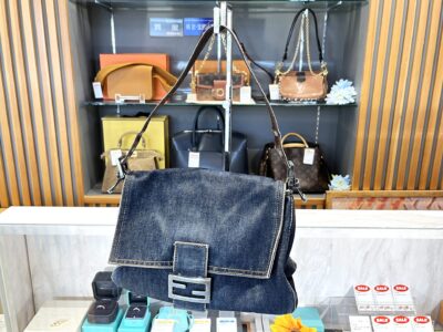 FENDI【フェンディ】デニム マンマバケット セミショルダーバッグ ハンドバッグ レザー