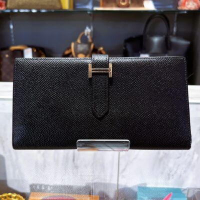 エルメス【HERMES】HERMES【エルメス】ベアンスフレ 二つ折り長財布 ヴォーエプソン シルバー金具 ブラック D刻