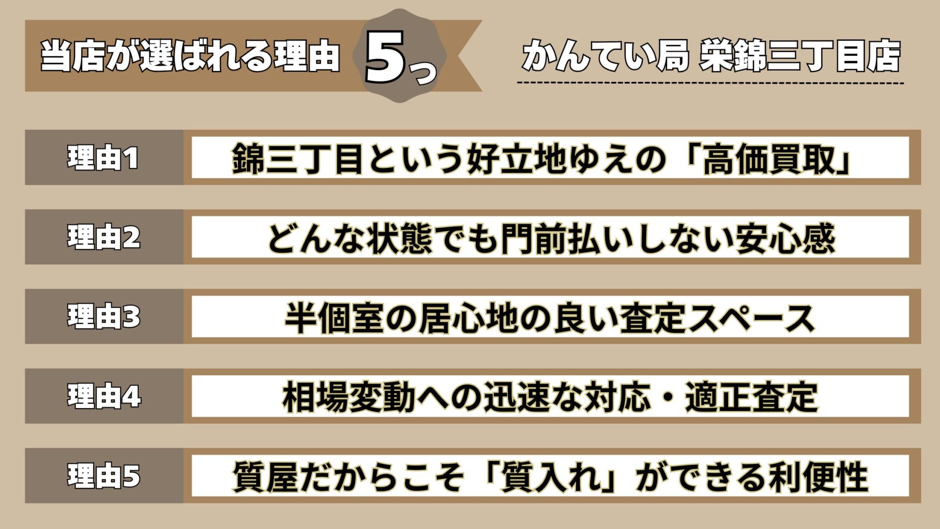 ① 錦三丁目という好立地ゆえの「高価買取」