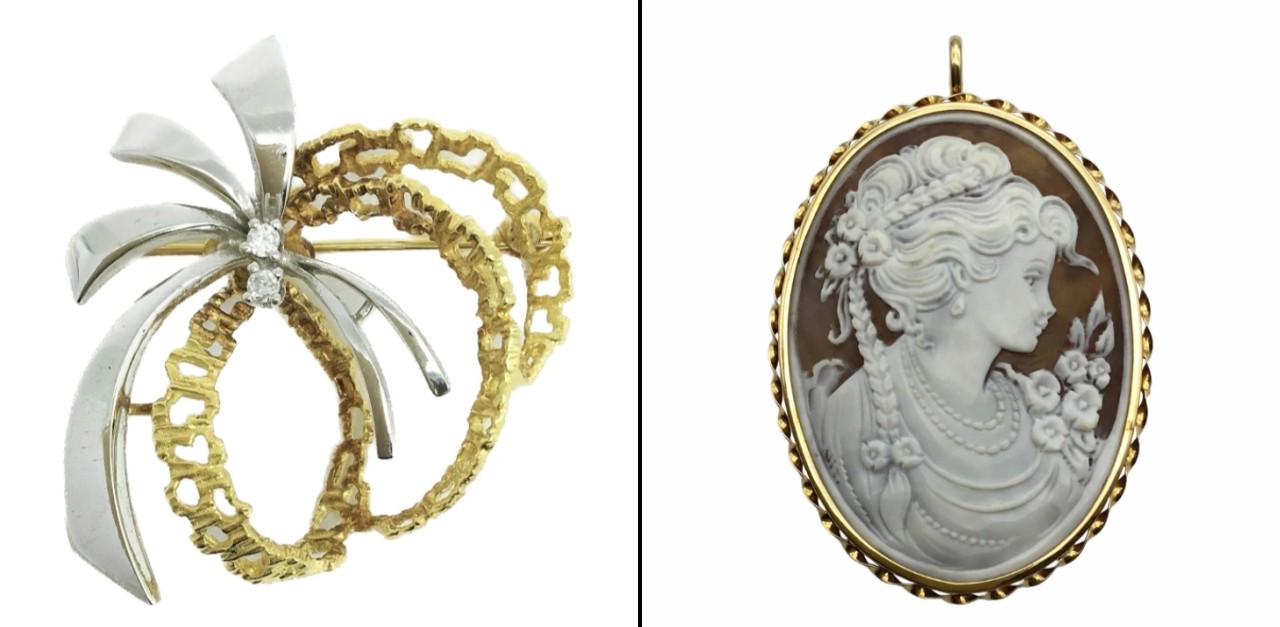 よく、まとめて複数点お持ちいただくアクセサリーの中に入っているのがブローチ。