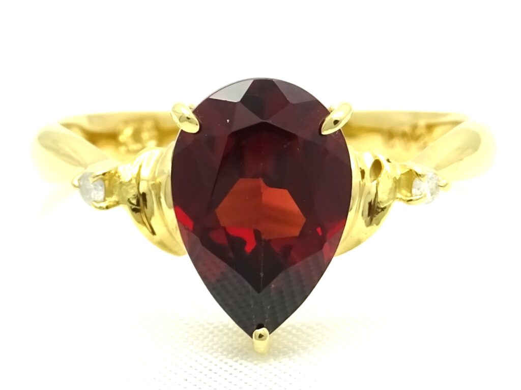 こちらはスリムな腕部分にペアシェイプの赤色石が華やかです!