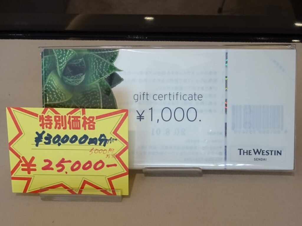 以前も入荷して大好評だったウェスティンホテルの商品券も入荷しました!