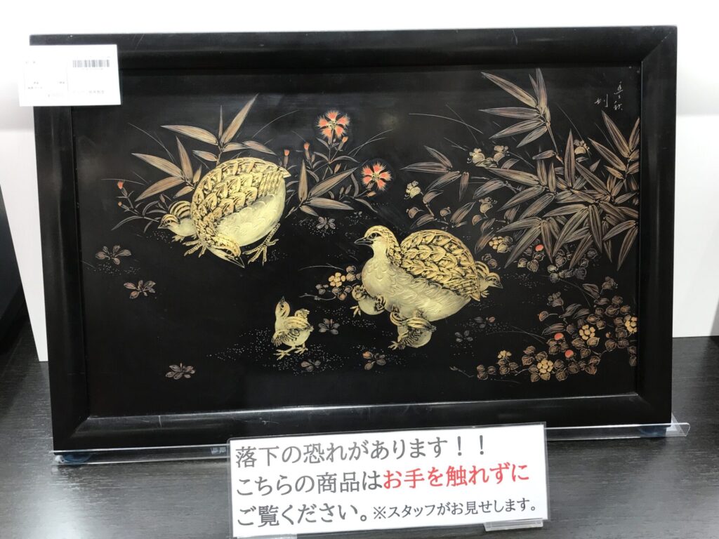 恐らく木の板を彫って鳥や花を描いた作品です。