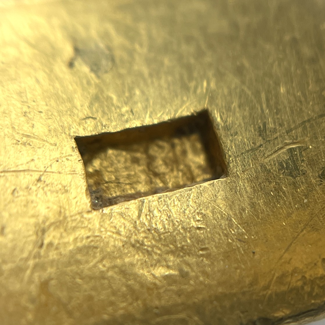 ちょっと汚れで見えづらいですが、しっかりと「純金」の刻印が入っているのが分かります。