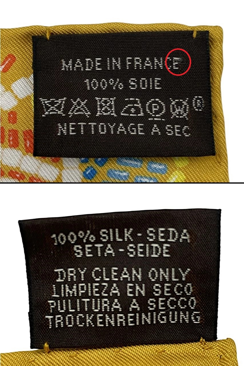 まずはエルメスのカレを査定する際に必ずチェックするタグの部分です。