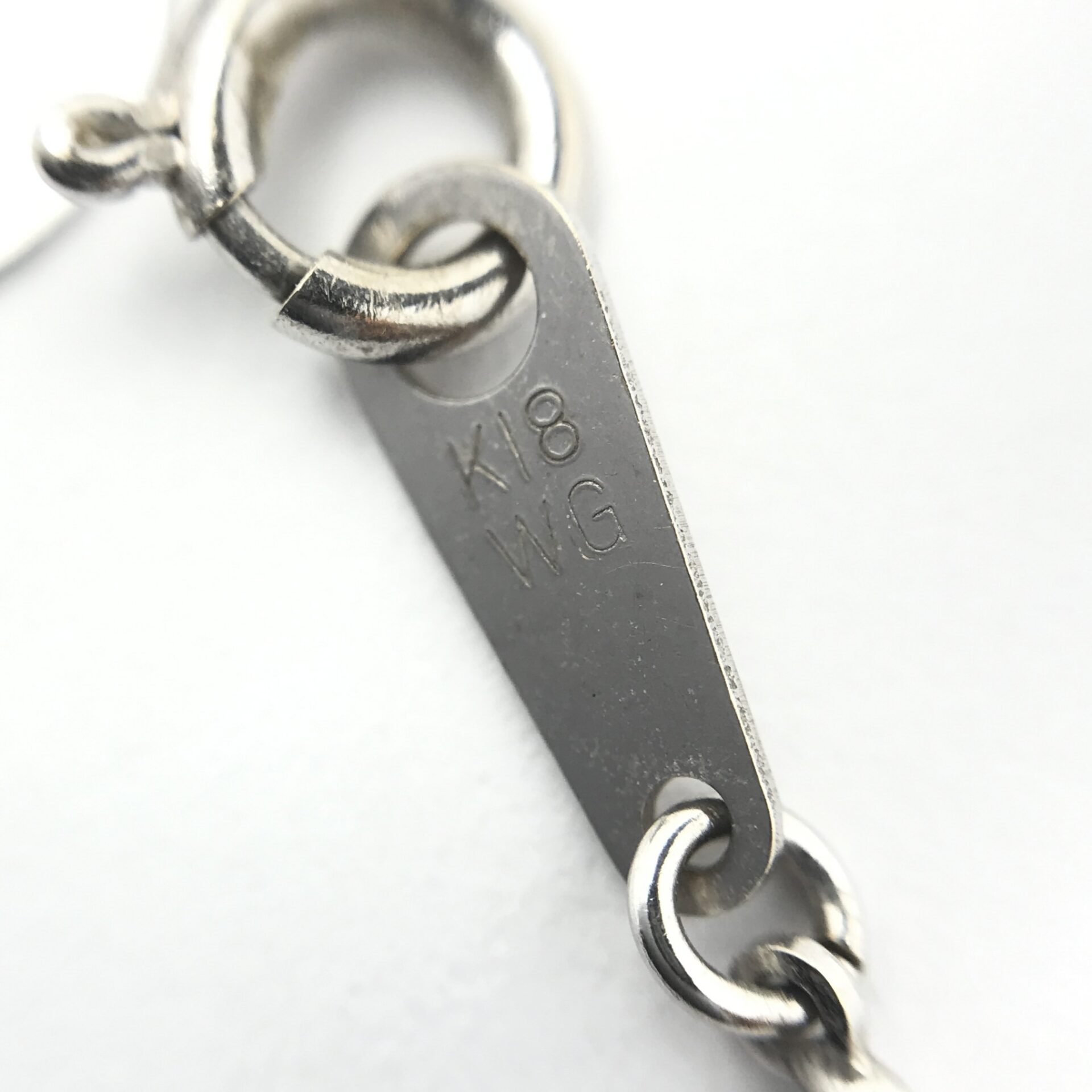 ネックレス・ブレスレットともに「K18WG」の刻印が入っていました。