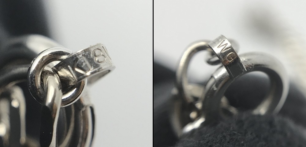 プラチナとWGの見分け方は、ネックレスであれば留め金の部分・指輪であれば内側の刻印で判断できますが、よく分からない・面倒くさい等であれば、そのまま当店へお持ちください。
