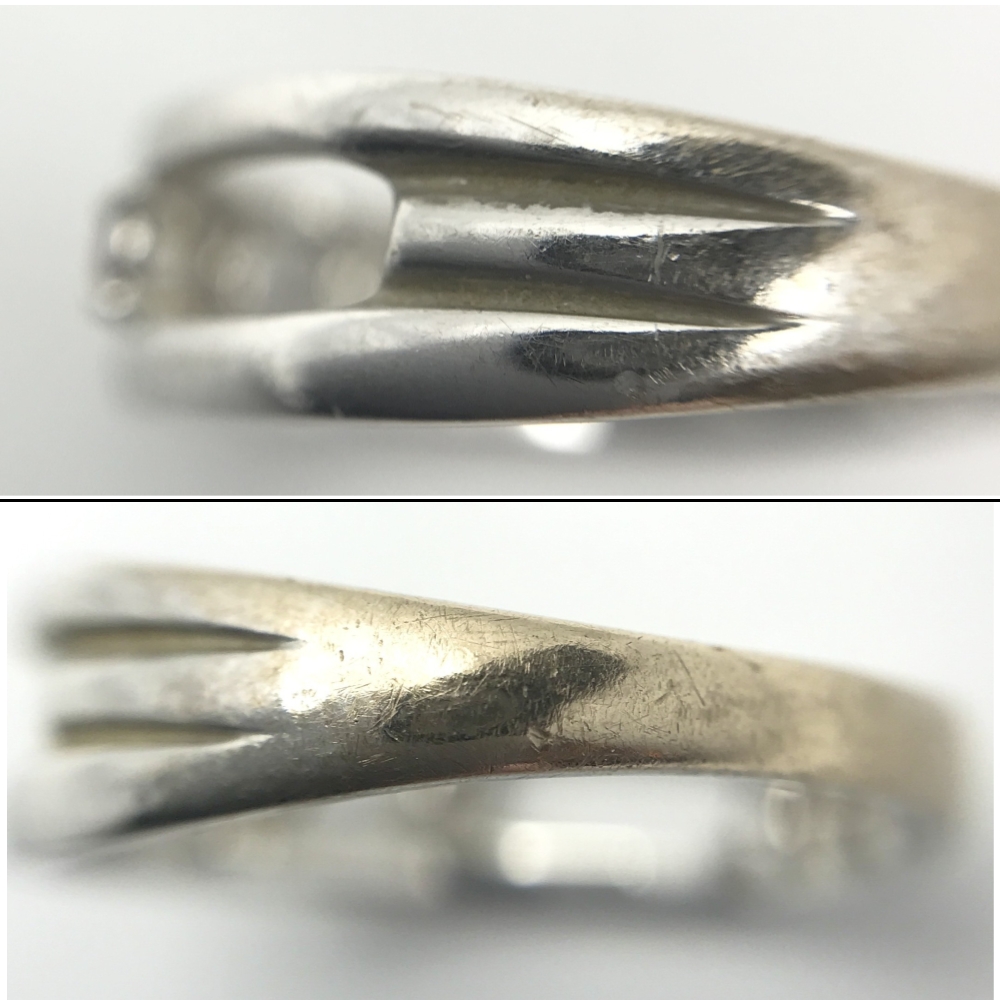 指輪は特に何かを持ったり擦れたりすることが多いため、このようにメッキが剥がれ変色したようになってしまうことがよくあります。