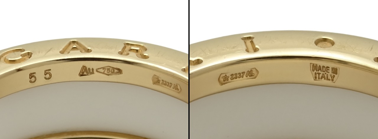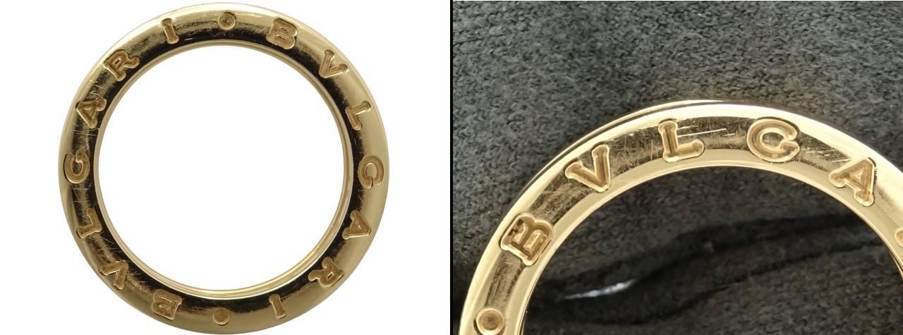 また、リング内側の刻印(素材刻印・サイズ・製造国など)がキレイにはっきり確認でき、ブルガリのジュエリーとしての信頼性もしっかり保たれていたのも高ポイントです!