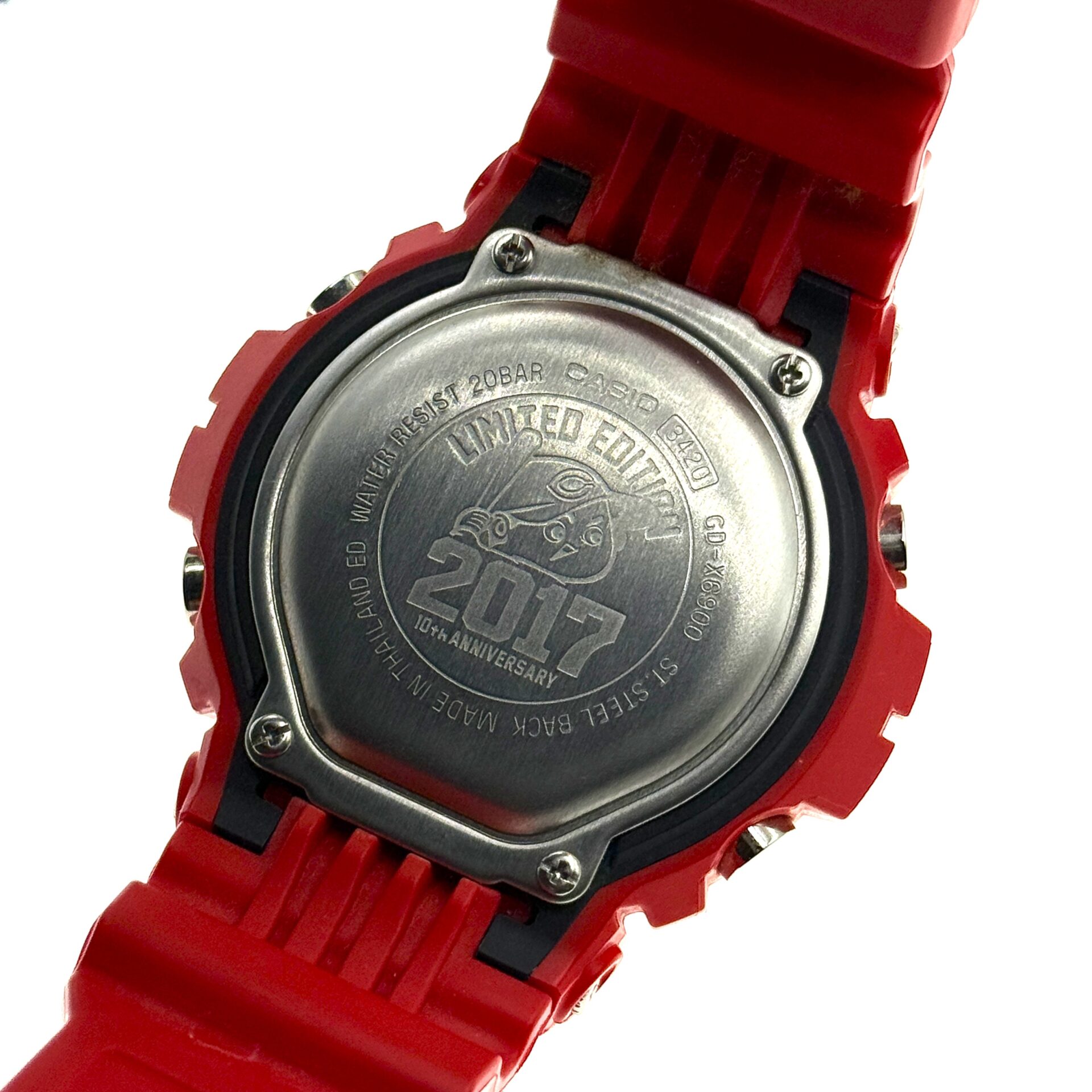 今回ご紹介しているモデルもベースモデル(GD-X6900-1JF)では5,000円前後で取引されているのに対して、広島東洋カープ10周年記念モデル(GD-X6900CARP17-4JR)では20,000円前後で取引されていました。