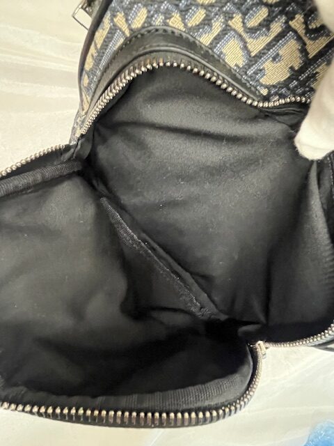 今回お査定させていただいた Christian Dior(クリスチャンディオール)『ライダー ミニスリングバッグ オブリークジャガード』 は、金具部分に保護シールが貼られたままの未使用級でした。外観だけでなく、内側やポケット部分まで非常に綺麗な状態で、使用感を感じさせない極上コンディションでした。