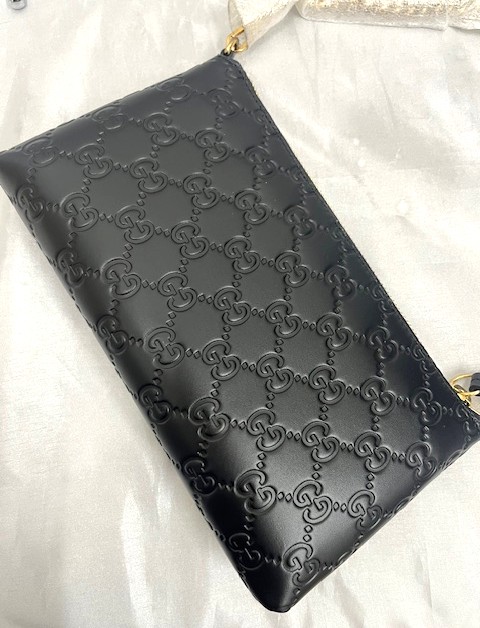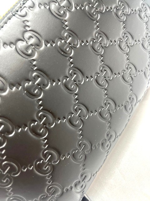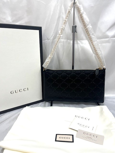 グッチシグネチャーレザー全体に 傷・スレ・押し跡は一切なし、表面は新品ならではのハリがあり、型崩れもありません。保管時のヨレなども見られない、理想的なフラットなコンディションでした。