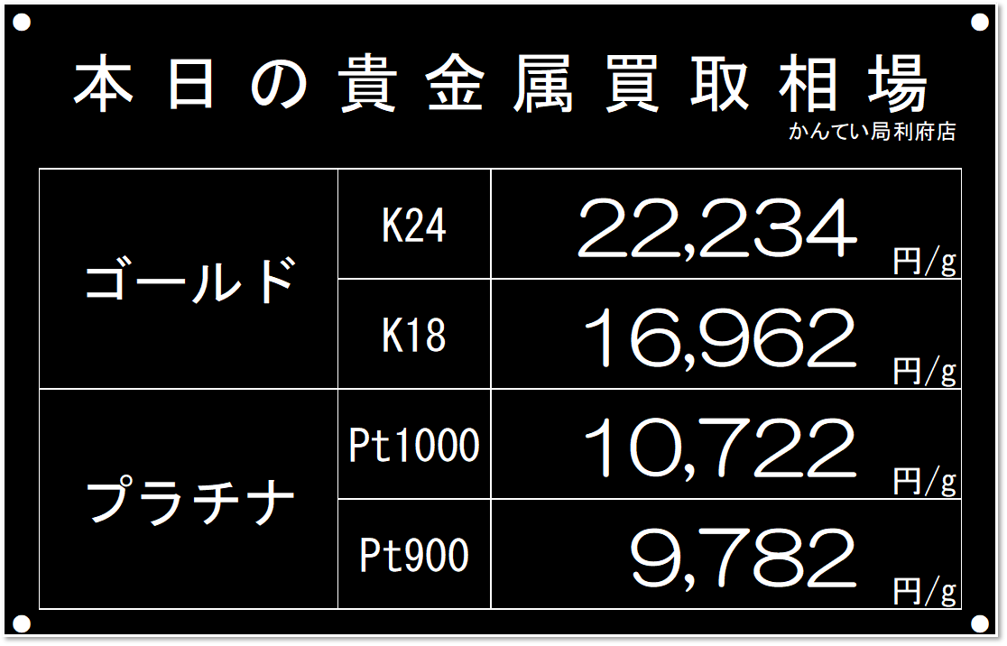 2025年12月25日(木) 【 本日のゴールド・ プラチナ 買取価格表】